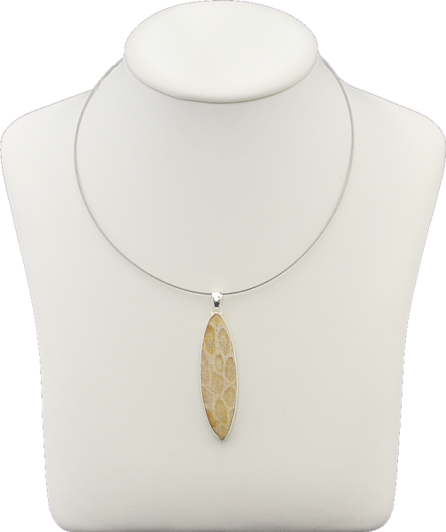 Koralle versteinert 58 mm, Einfassung Silber 925, im Stahreif mit Schraubverschluss 45 cm lang