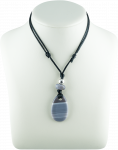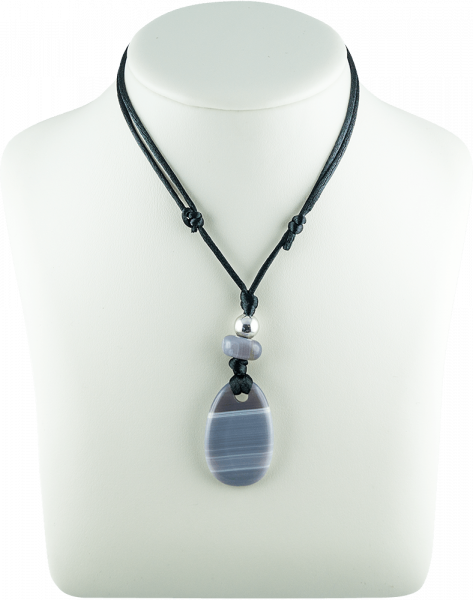Kraftstein Anhänger Größe 2,5 cm breit x 4 cm hoch, flache Form Struktur und Maserung kommen dadurch gut zur Geltung, mit zusätzlich kleinem Kraftstein und einer silberfarbenen Kugel, Trageband Nylon Fb. schwarz, in der Länge verstellbar