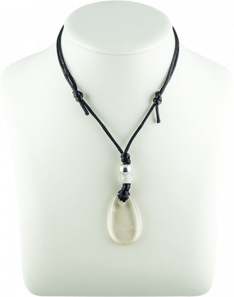 Kraftstein Anhänger Größe 2,5 cm breit x 4 cm hoch, flache Form Struktur und Maserung kommen dadurch gut zur Geltung, mit zusätzlich kleinem Kraftstein und einer silberfarbenen Kugel, Trageband Nylon Fb. schwarz, in der Länge verstellbar