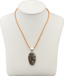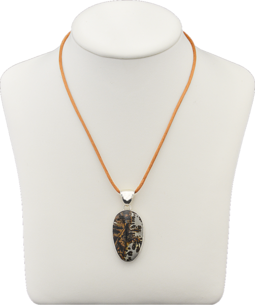 Porzellanit Anhänger 55 mm, Einfassung Silber 925, mit Nylonband 2 mm, 45 cm lang, mit Karabinerverschluss Silber 925, Farbe braun