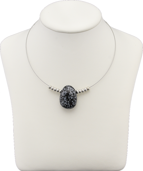 Schneeflocken Obsidian 35 mm mit 10 versilberten Metallkugeln im Stahlreif mit Schraubverschluss 45 cm