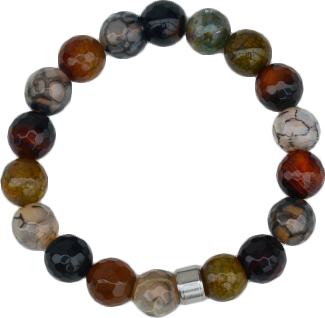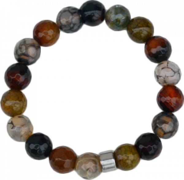 Armband mit Schlangen-Achat Perlen bunt gefärbt und facettiert 10 mm auf Elastikband mit Edelstahlhülse