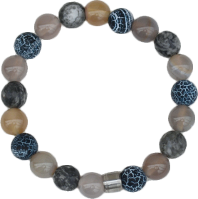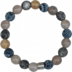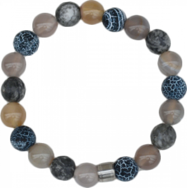 Armband mit Achat, Onyx und Zebra-Marmor Perlen 8 mm auf Elastikband mit Edelstahl-Hülse
