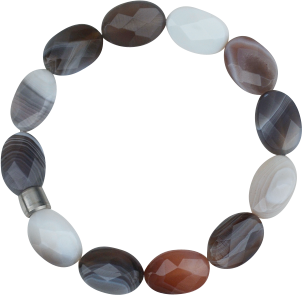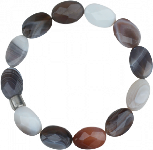 Armband mit Botswana Achat Linsen facettiert auf Elastikband mit Edelstahl Hülse