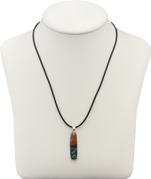 Chrysocoll Anhänger 45 mm, Einfassung Silber 925, mit Kautschukband 2 mm, 50 cm lang mit Karabinerververschluss Silber 925