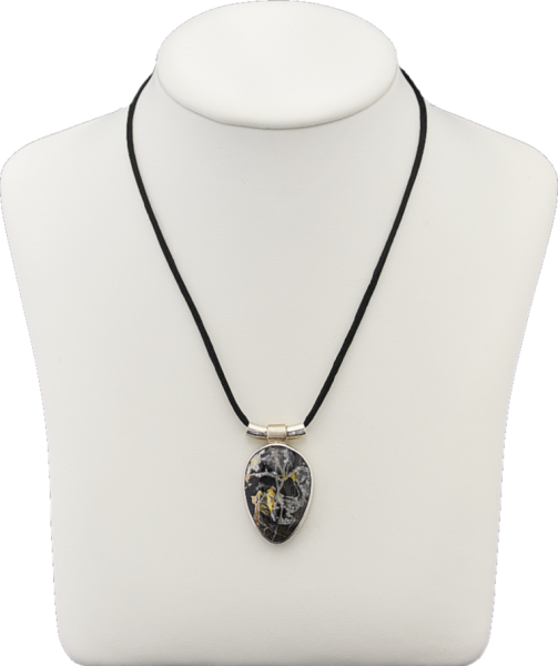 Jasper Anhänger 45 mm, Einfassung Silber 925, mit Nylonband 2 mm, 45 cm lang, mit Karabinerverschluss Silber 925, Farbe schwarz