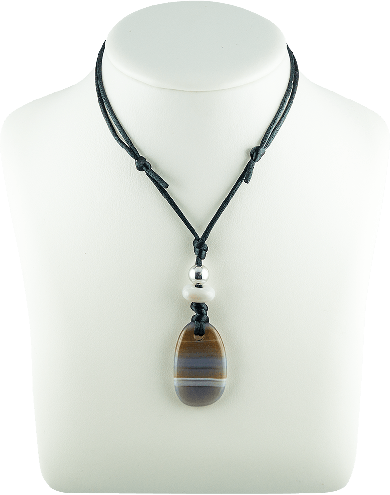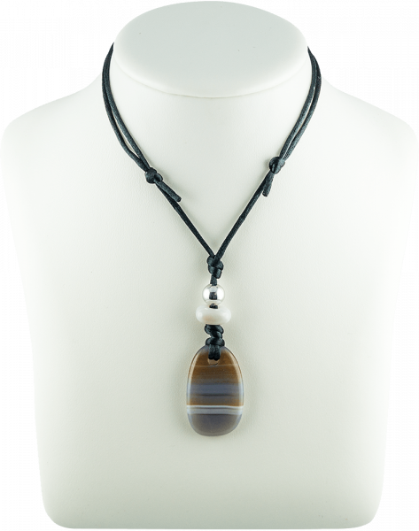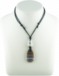Kraftstein Anhänger Größe 2,5 cm breit x 4 cm hoch, flache Form Struktur und Maserung kommen dadurch gut zur Geltung, mit zusätzlich kleinem Kraftstein und einer silberfarbenen Kugel, Trageband Nylon Fb. schwarz, in der Länge verstellbar