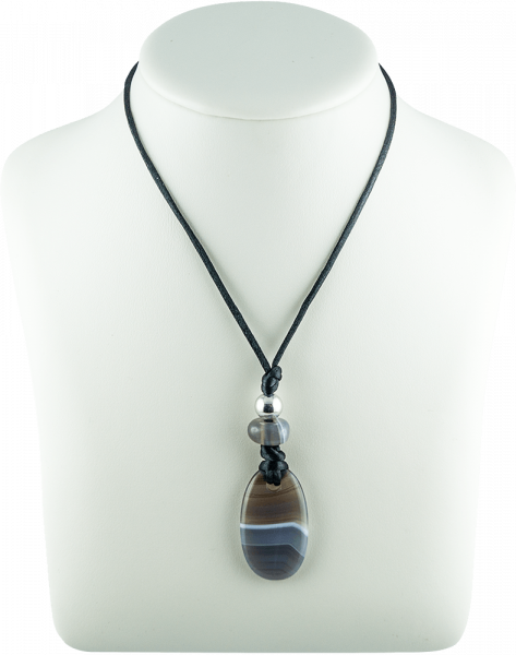 Kraftstein Anhänger Größe 2,5 cm breit x 4 cm hoch, flache Form Struktur und Maserung kommen dadurch gut zur Geltung, mit zusätzlich kleinem Kraftstein und einer silberfarbenen Kugel, Trageband Nylon Fb. schwarz, in der Länge verstellbar