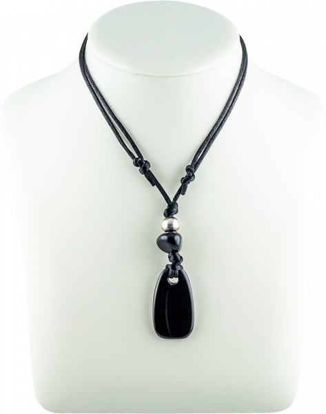 Kraftstein Anhänger Größe 2,5 cm breit x 4 cm hoch, flache Form Struktur und Maserung kommen dadurch gut zur Geltung, mit zusätzlich kleinem Kraftstein und einer silberfarbenen Kugel, Trageband Nylon Fb. schwarz, in der Länge verstellbar