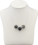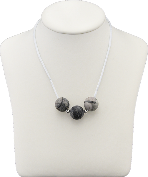 Picasso Kugel 20 mm, 3 Stück, mit 2 versilberten Metallkugeln im Nylon Halsband mit Karabinerverschluss Silber 925, 45 cm lang