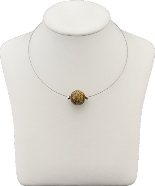 Eine Picasso Marmor Kugel 20 mm und 2 versilberten Metallkugeln im Stahreif mit Schraubverschluss 45 cm
