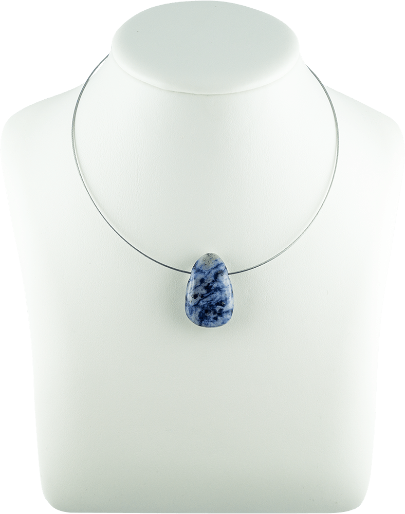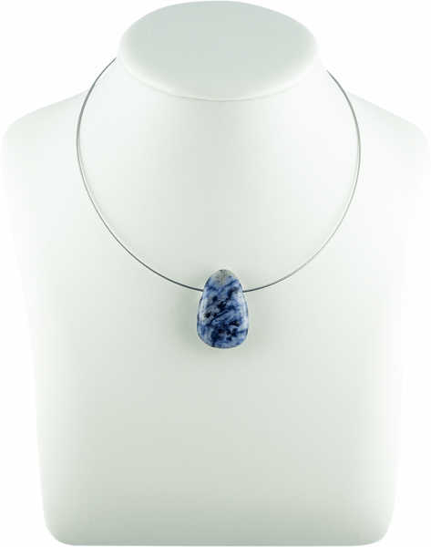Sodalith, Edelstein mit seitlicher Bohrung, in polierter Oberfläche, mit Edelstahlreif incl. Schraubverschluss, 45 cm lang